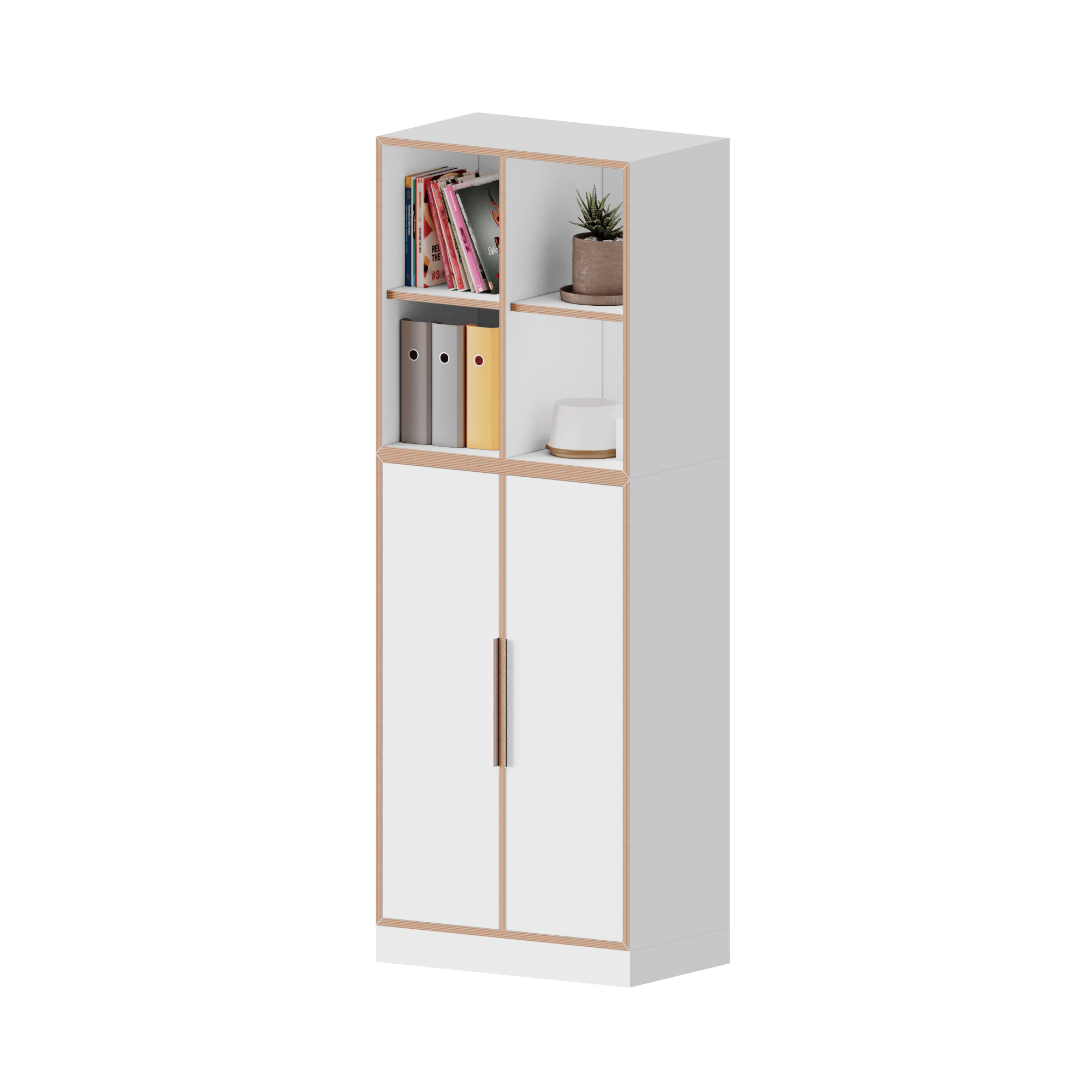 Ons qickly® kastsysteem overtuigt door zijn 45 graden verstek en ABS-rand in multiplex-look. De lichaamskleur is witte melamine. Dit ultramoderne ontwerp maakt het klaslokaal en kantoor tot een echte eyecatcher. De kast maakt indruk met veel opbergruimte en mobiliteit, waardoor hij zowel in scholen als kantoren zijn plaats vindt. Het bestaat uit een kast met 3 ordnerhoogtes en een extra bovenkast met 2 ordnerhoogtes. Bovendien kan het kastensysteem op elk moment eenvoudig worden uitgebreid. De voethoogte bedraagt 8,6 cm. Bij gebruik van optioneel verkrijgbare zwenkwielen verandert de basishoogte niet. De materiaaldikte van de wanden en planken bedraagt 19 mm, de vaste achterwand is 8 mm dik en garandeert een hoge stabiliteit. De kast wordt gedemonteerd aan u geleverd inclusief montagehandleiding, zodat u deze zelf kunt monteren. Zoals de naam van ons productassortiment al doet vermoeden, overtuigt het qickly® kast- en stellingsysteem door zijn snelle levering. Qickly® - Slim. Bijna. Eenvoudig.
