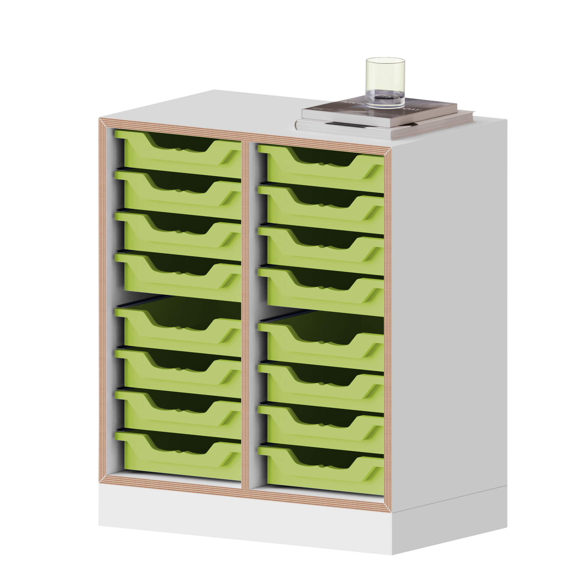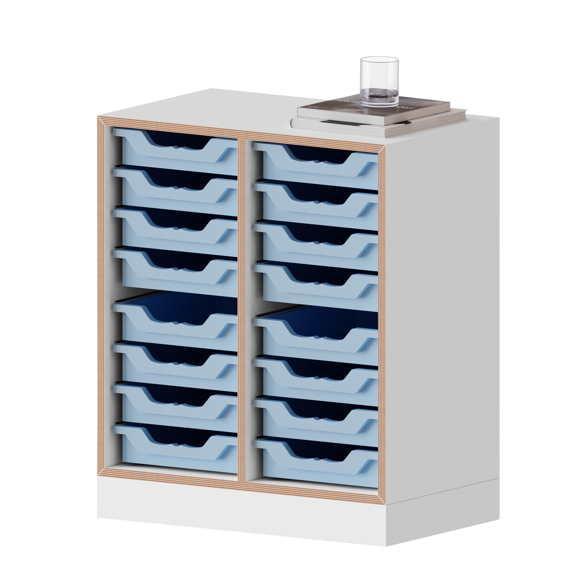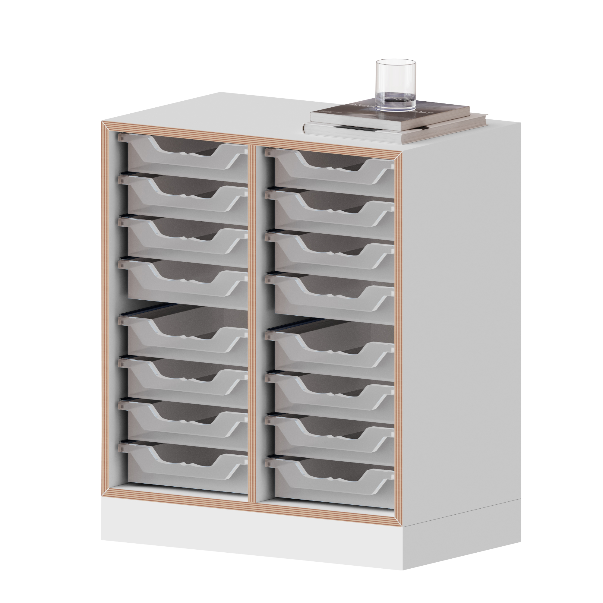 qickly® plank, 2 ordnerhoogtes, 16 kleine Ergo Tray dozen - B/H/D: 70,1x74,3x42,6 cm