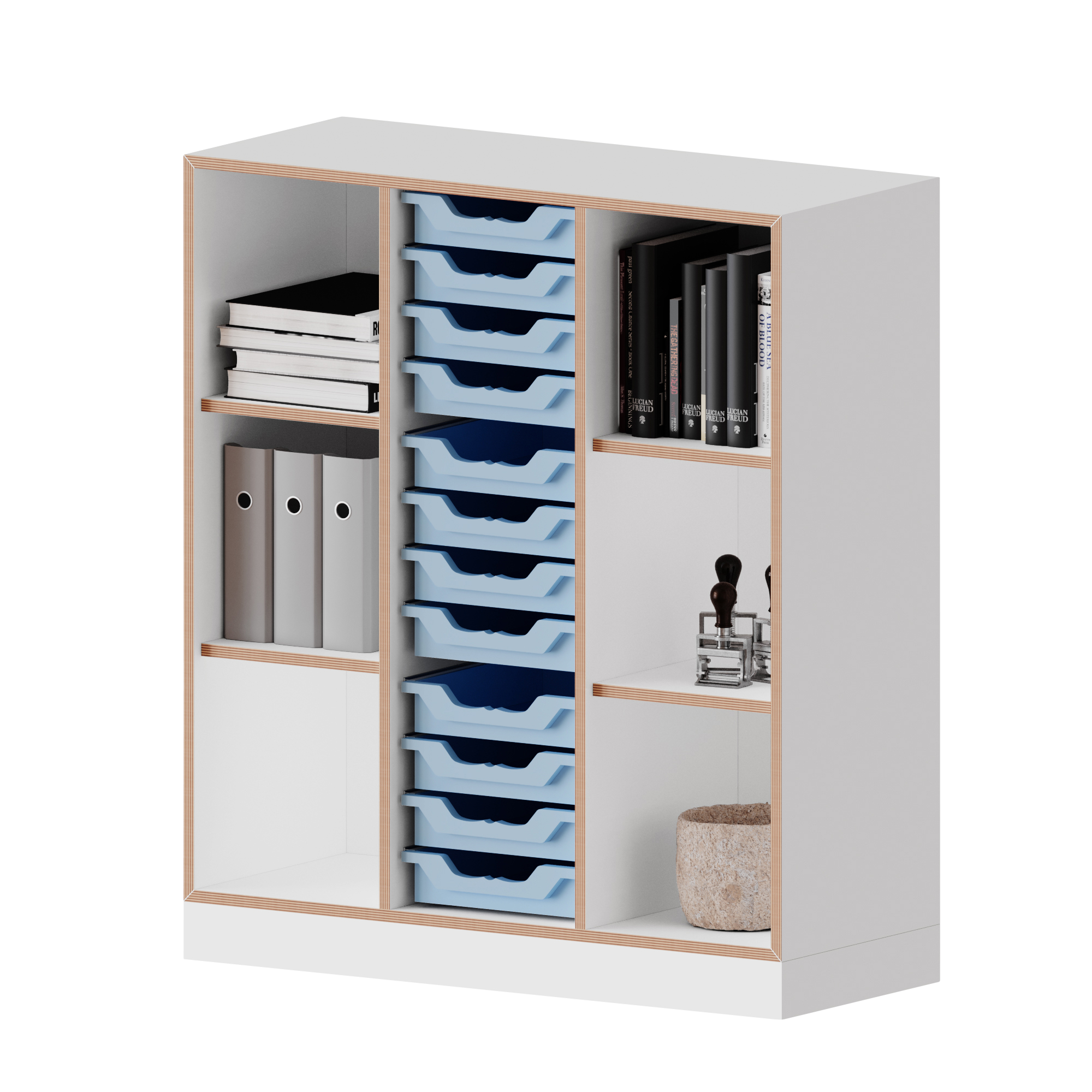 qickly® plank, 3 ordnerhoogtes, 12 kleine ergobakdozen - B/H/D: 104,2x110,5x42,6 cm