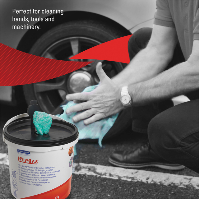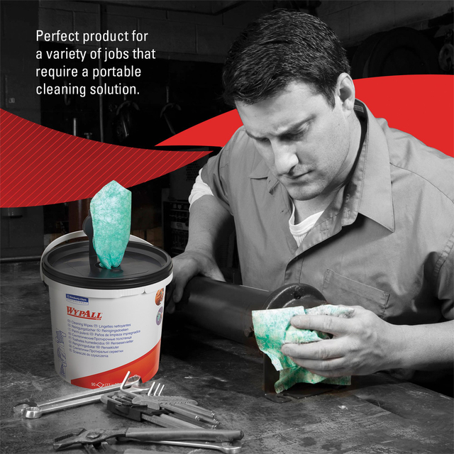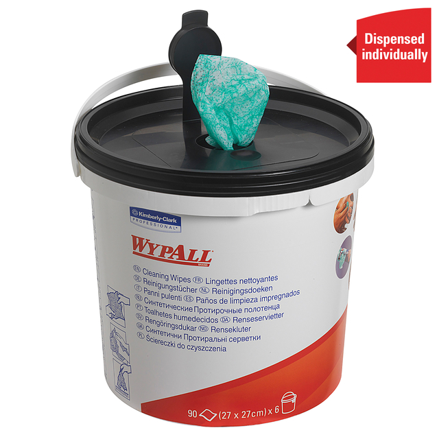 * WypAll schoonmaak doekjes 7775 - 6 emmers x 90 geïmpregneerde doeken, groen * WypAll poetsdoeken zijn het perfecte product voor allerlei taken die om een draagbare poetsoplossing vragen. * Geïmpregneerd voor maximaal gemak, zodat u geen zeep, gel of water hoeft toe te voegen. * Afzonderlijke en hygiënische uitgifte via een centerfeed houder om afval te verminderen. * Individuele velgrootte: 27cm (L) x 27cm (B). 6 emmers x 90 geïmpregneerde groene doeken (540 in totaal) * Perfect voor het reinigen van gereedschap en machines * De doekjes hebben een ruwe kant voor schrobben en een zachte kant voor reiniging en afwerking. * De poetsdoeken zijn verpakt in een centerfeed emmer en worden per stuk uitgegeven om afval te verminderen en hygiëne te bevorderen