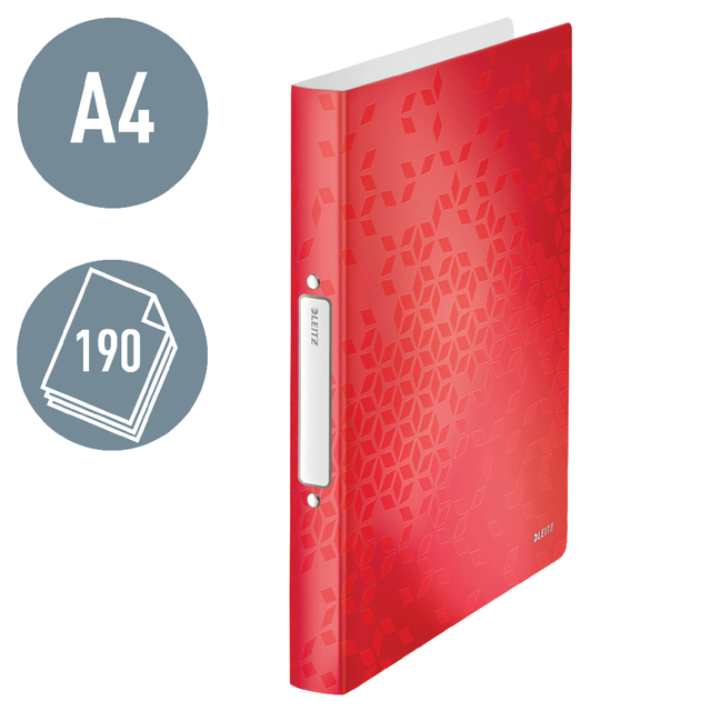 Properties "Ringband Leitz WOW A4 2-rings O-mechaniek 25mm PP rood"