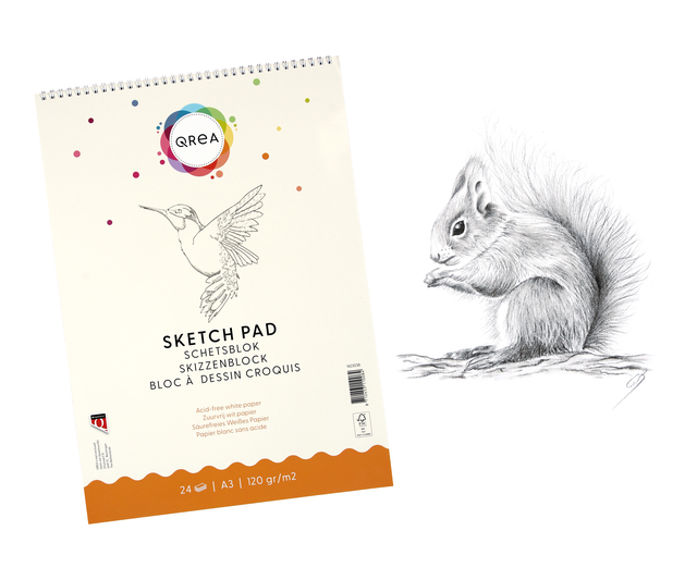 * Of je nu een beginner bent of een professionele kunstenaar, dit tekenblok van Qrea is geschikt voor iedereen! * Met dit tekenblok van 160 grams papier maak je de mooiste tekeningen of schetsen. * Dit schetsblok heeft een dubbele spiraal. * Het bevat radeervast papier. * Het harde karton aan de onderkant zorgt voor optimaal gebruiksgemak. * Afmeting: A3 formaat. * Blok à 24 vellen papier. * Diverse formaten beschikbaar. * Geproduceerd in Nederland.