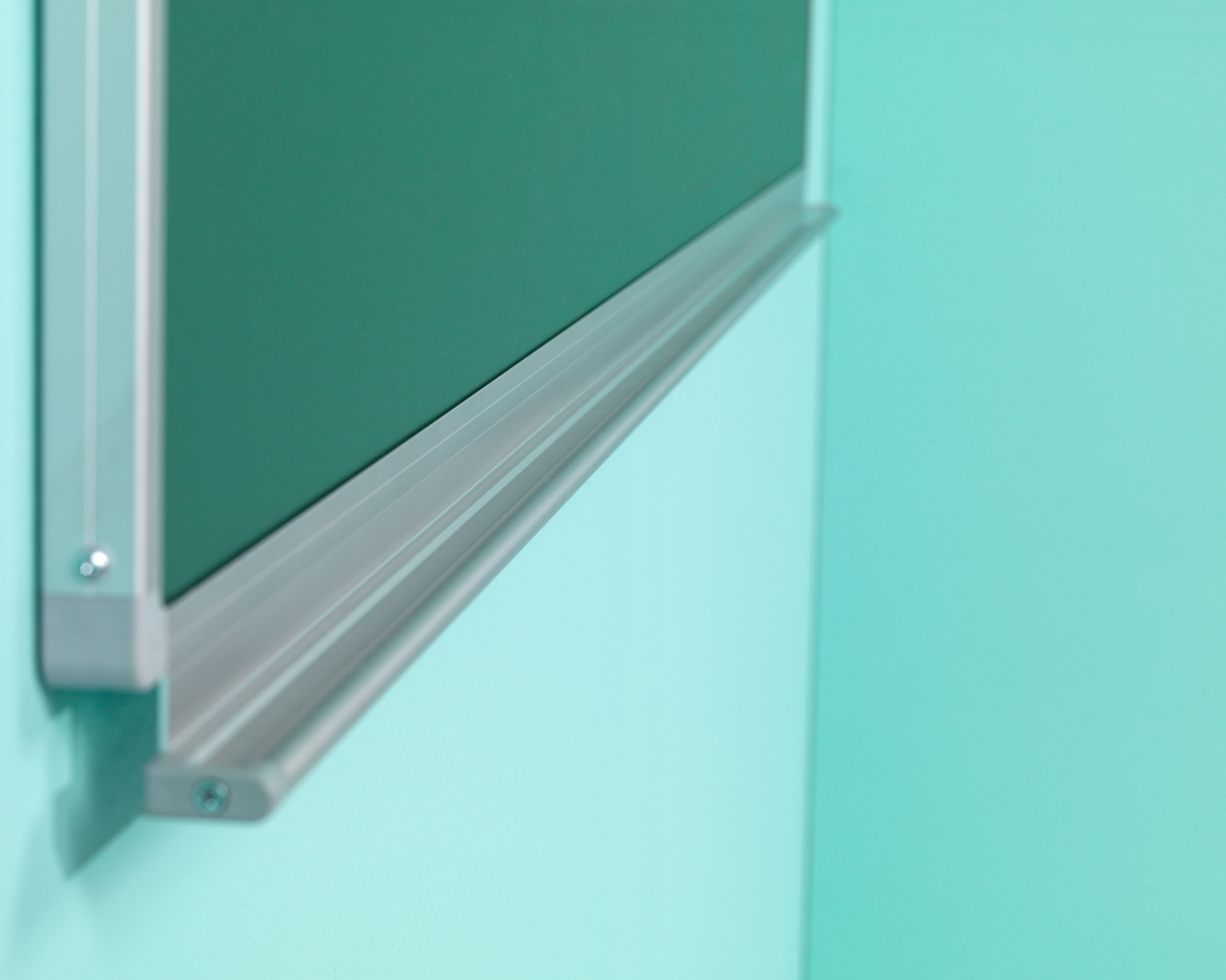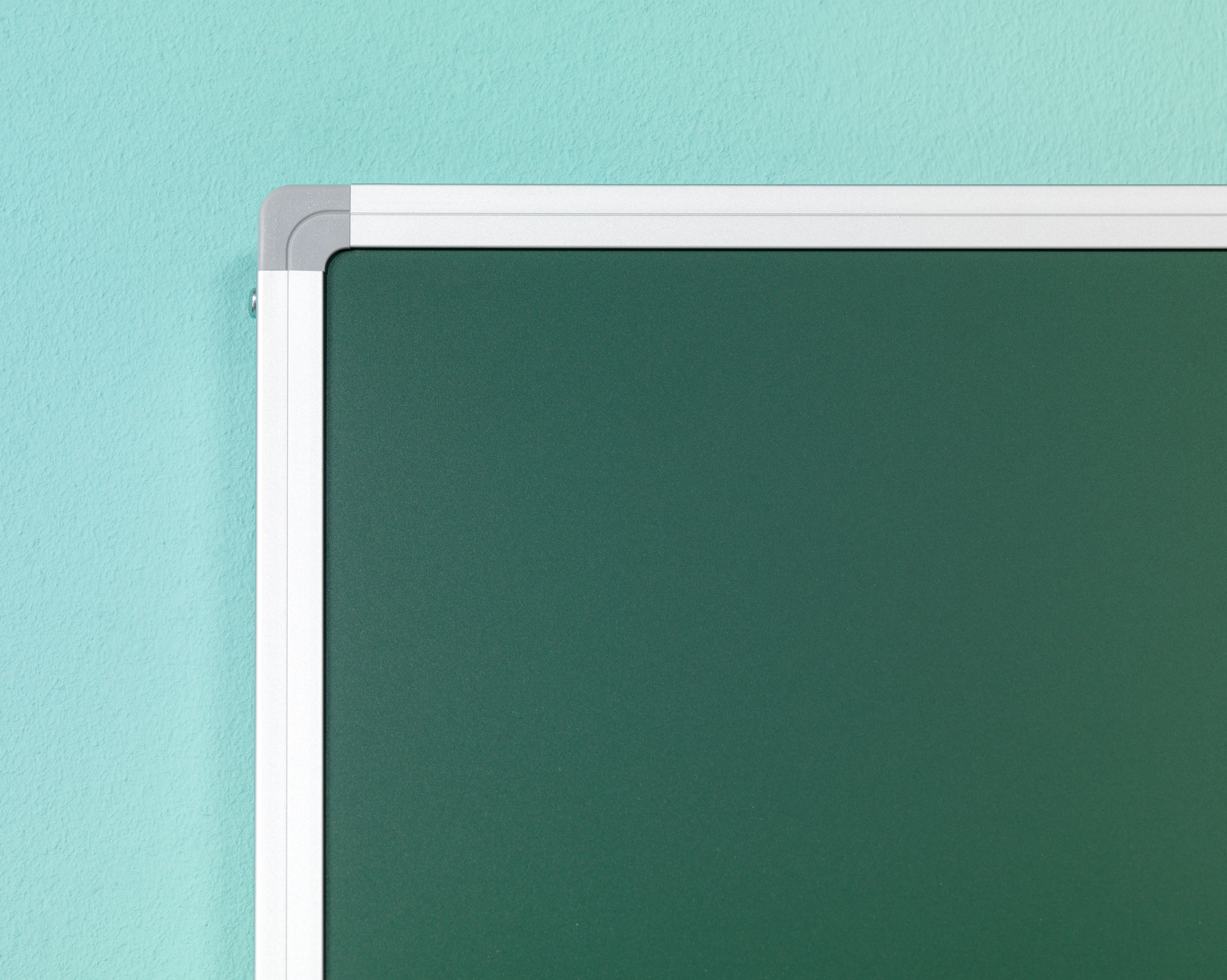 Schoolbord met 1 schrijfvlak in emailstaal groen. Geanodiseerd 19 mm aluminium profiel met kunststof hoekstukken, inclusief afleg-/ krijtopvanggoot over de gehele breedte van het bord. Montage aan een vaste muur. Magneethoudend en droog uitwisbaar.