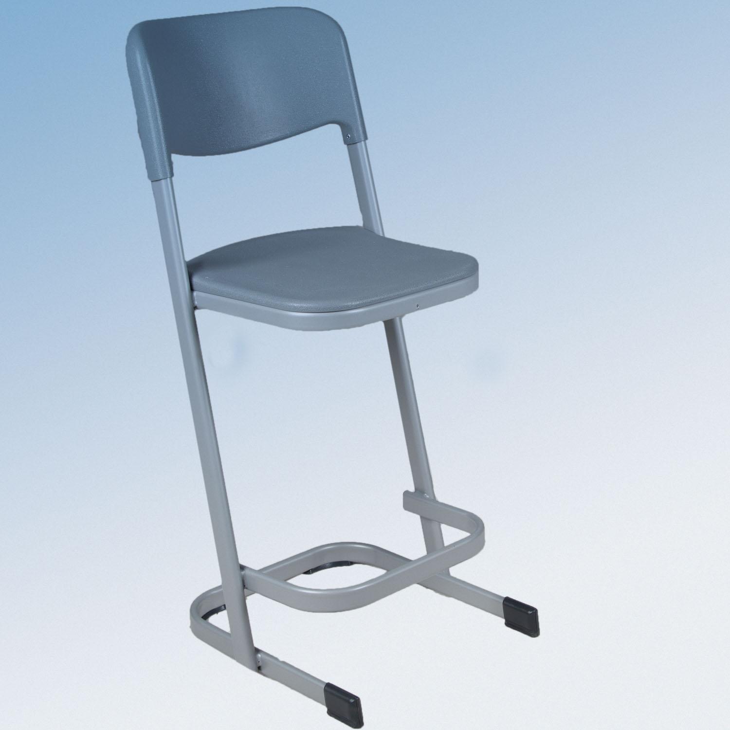 Schoolstoel op geschikte hoogte voor de bartafel. Kunststof zitting en rugleuning. Zitcomfort door "air suspension", stevig gelast stalen buisframe met opstaphulp voor kleinere leerlingen.