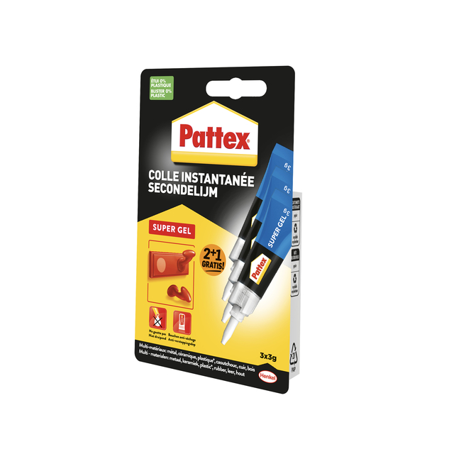 Pattex is een merknaam in kleefmiddelen van de Duitse fabrikant Henkel. Lijm, plakband voor klussen en 2-zijdig en verpakkingstape van van Pattex worden veel gebruikt op kantoor (en ook thuis) en kunnen daarom niet ontbreken in het online assortiment van KantoorArtikelen.nl. Kijk ook eens op de site van Pattex (www.pattex.nl) voor allerhande handige tips met betrekking tot lijmen in de door hun opgemaakte lijmwijzer.