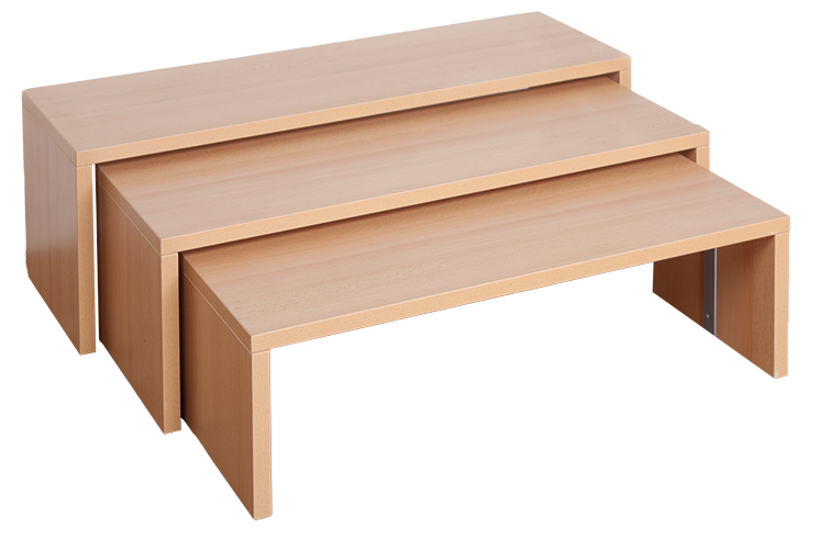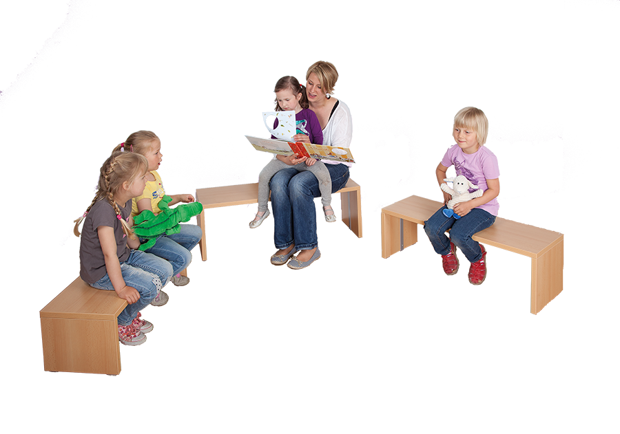 De praktische bankenset bestaande uit afzonderlijke banken van verschillende afmetingen maakt een ruimtebesparende, stapelbare opslag mogelijk. De stabiele zijbanken met verschillende hoogtes kunnen eenvoudig uit elkaar worden getrokken voor gebruik of over elkaar worden geschoven voor opslag. Het decor van de stoelenset is selecteerbaar. De stapelbanken hebben een passende zitplaats voor kinderen van verschillende leeftijden en zijn dus bijzonder geschikt voor gemengde leeftijdsgroepen. Afzonderlijke afmetingen (B/H/D): Bank 1: 84x26x32 cm Bank 2: 92x30x32 cm Bank 3: 100x34x32 cm