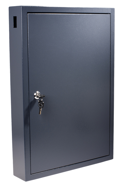 * High security sleutelkast met elektronisch combinatieslot. * Dikte behuizing 2,0mm. * Deurdikte 4,0mm. * Key Return opening, waardoor men zijn/haar sleutel weer eenvoudig kan retourneren ook als de sleutelkast gesloten is. * Metalen sleutelhaken (niet verstelbaar). * Compleet met sleutelhangers, genummerde haken, bevestigingsmateriaal en 2 emergency sleutels om de sleutelkast te sluiten/openen. * Er kan 1 gebruikerscode en 1 administratieve code worden geïnstalleerd (code van minimum 3 cijfers en een maximum van 8 cijfers). * Werkt op 4xAA batterijen (niet meegeleverd). * Kleur: donkergrijs mat finish.