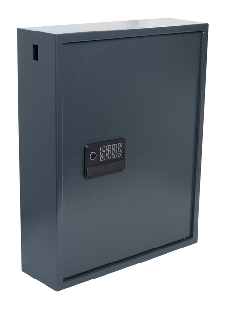 * De vernieuwde Pavo high security sleutelkast met solide behuizing en dubbele stalen vergrendelingsbouten is ideaal voor verschillende professionele omgevingen. * Veilige en betrouwbare manier om sleutels perfect georganiseerd op te bergen. * De automatisch openende sleutelkast is voorzien van een elektronisch cijferslot dat eenvoudig te programmeren is met een persoonlijke code (tussen 3 en 8 cijfers). * Het vingerafdrukslot kan tot 29 vingers opslaan. * Het vernieuwde sluitsysteem is inclusief een USB type-C connector voor externe voeding. * Het dient als een noodstroomoplossing waarmee gebruikers de deur kunnen openen in het geval dat een batterij bijna leeg is of zelfs wanneer er geen batterijen aanwezig zijn én in het geval dat de noodsleutels niet bij de hand zijn. * Deze innovatieve, gebruiksvriendelijke optie elimineert het risico dat de sleutelkast vergrendeld blijft. * Gebruikers kunnen eenvoudig een willekeurige powerbank met een USB type-C op de kluis aansluiten. * De sleutelkast is eenvoudig aan de muur te installeren dankzij de voorgeboorde gaten en bijgeleverde 4x expansieschroeven. * Voorzien van een zelfopenend en sluitingssysteem. * Inclusief gelabelde sleutelhangers en 2x ontgrendelingssleutels voor noodgevallen. * De elektronische digitale slot wordt gevoed door 4 AA-batterijen (niet meegeleverd). * Dikte stalen wand: 2mm. Dikte stalen deur: 4mm. * Extra lange garantie van 5 jaar.