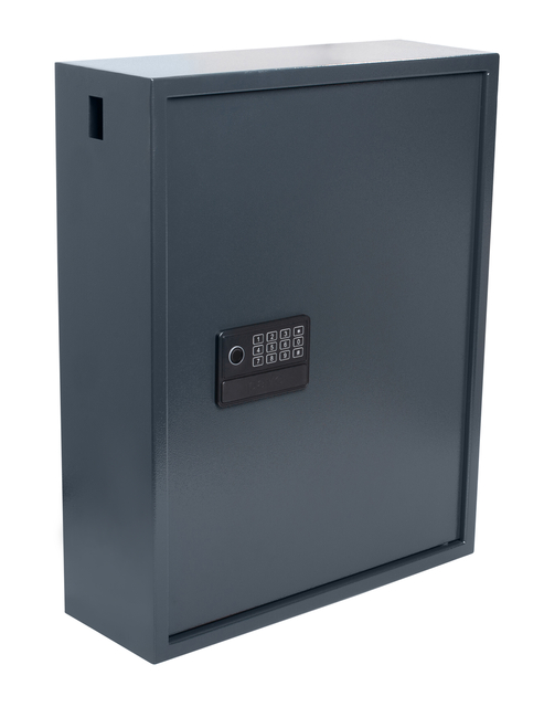 * De vernieuwde Pavo high security sleutelkast met solide behuizing en dubbele stalen vergrendelingsbouten is ideaal voor verschillende professionele omgevingen. * Veilige en betrouwbare manier om sleutels perfect georganiseerd op te bergen. * De automatisch openende sleutelkast is voorzien van een elektronisch cijferslot dat eenvoudig te programmeren is met een persoonlijke code (tussen 3 en 8 cijfers). * Het vingerafdrukslot kan tot 29 vingers opslaan. * Het vernieuwde sluitsysteem is inclusief een USB type-C connector voor externe voeding. * Het dient als een noodstroomoplossing waarmee gebruikers de deur kunnen openen in het geval dat een batterij bijna leeg is of zelfs wanneer er geen batterijen aanwezig zijn én in het geval dat de noodsleutels niet bij de hand zijn. * Deze innovatieve, gebruiksvriendelijke optie elimineert het risico dat de sleutelkast vergrendeld blijft. * Gebruikers kunnen eenvoudig een willekeurige powerbank met een USB type-C op de kluis aansluiten. * De sleutelkast is eenvoudig aan de muur te installeren dankzij de voorgeboorde gaten en bijgeleverde 4x expansieschroeven. * Voorzien van een zelfopenend en sluitingssysteem. * Inclusief gelabelde sleutelhangers en 2x ontgrendelingssleutels voor noodgevallen. * De elektronische digitale slot wordt gevoed door 4 AA-batterijen (niet meegeleverd). * Dikte stalen wand: 2mm. Dikte stalen deur: 4mm. * Extra lange garantie van 5 jaar.