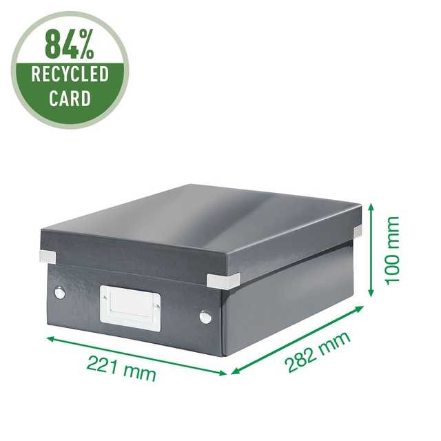 Properties "Sorteerbox Leitz WOW Click & Store 220x100x282mm gerecycled karton zwart"