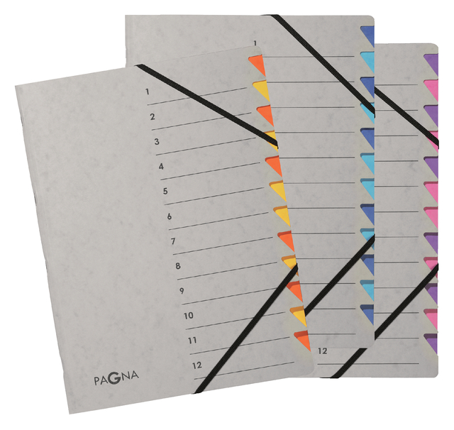 * Een duurzame kartonnen sorteermap met 7 lichtblauwe en donkerblauwe tabs. * Bedrukt met 1-7. De kaft is beschrijfbaar. * De zwarte elastieksluiting zorgt ervoor dat de documenten op hun plaats blijven. * Voor documenten in A4 formaat of kleiner.