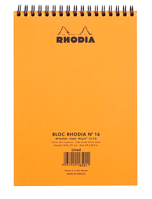 Spiraalblok Rhodia A5 lijn 160 pagina's 80gr oranje