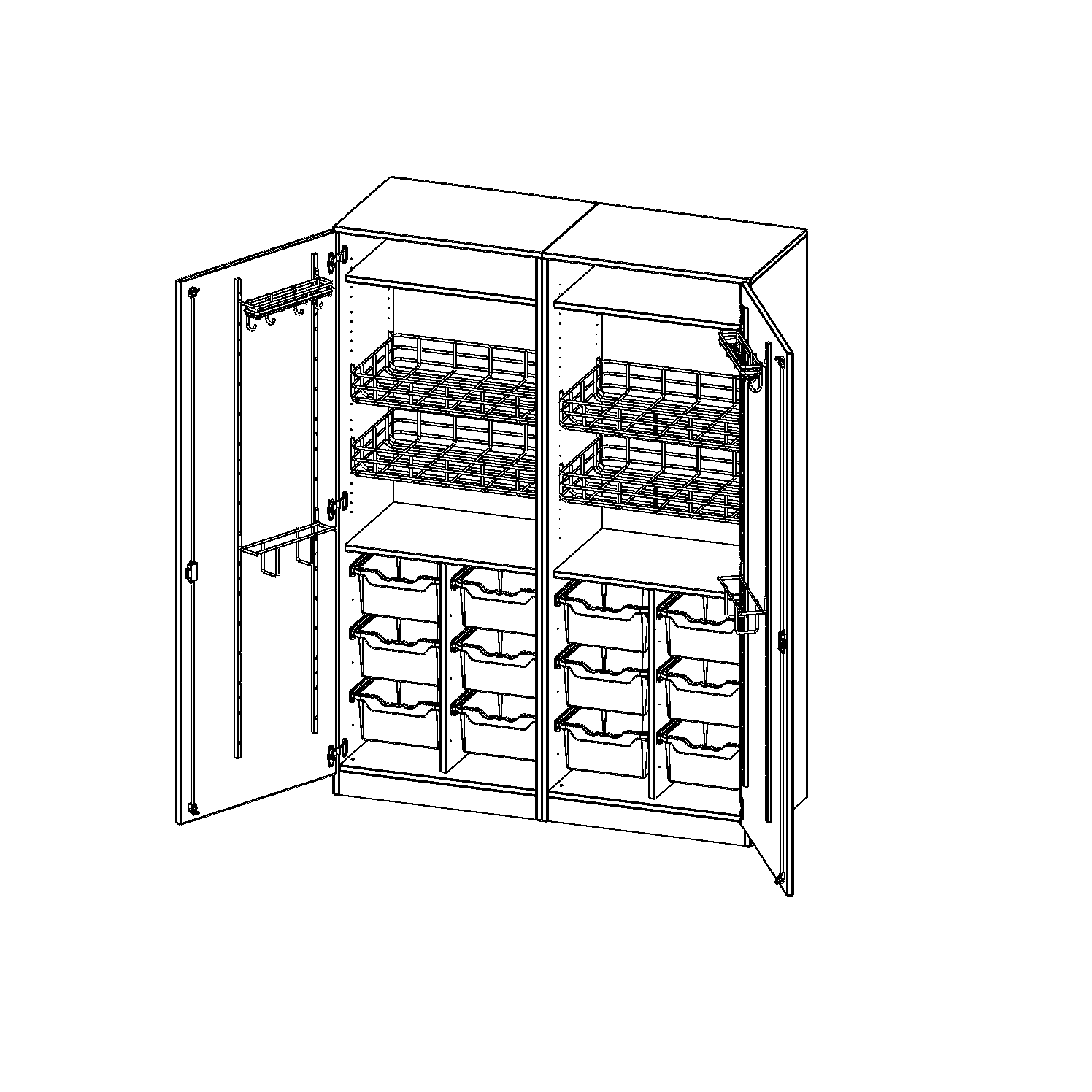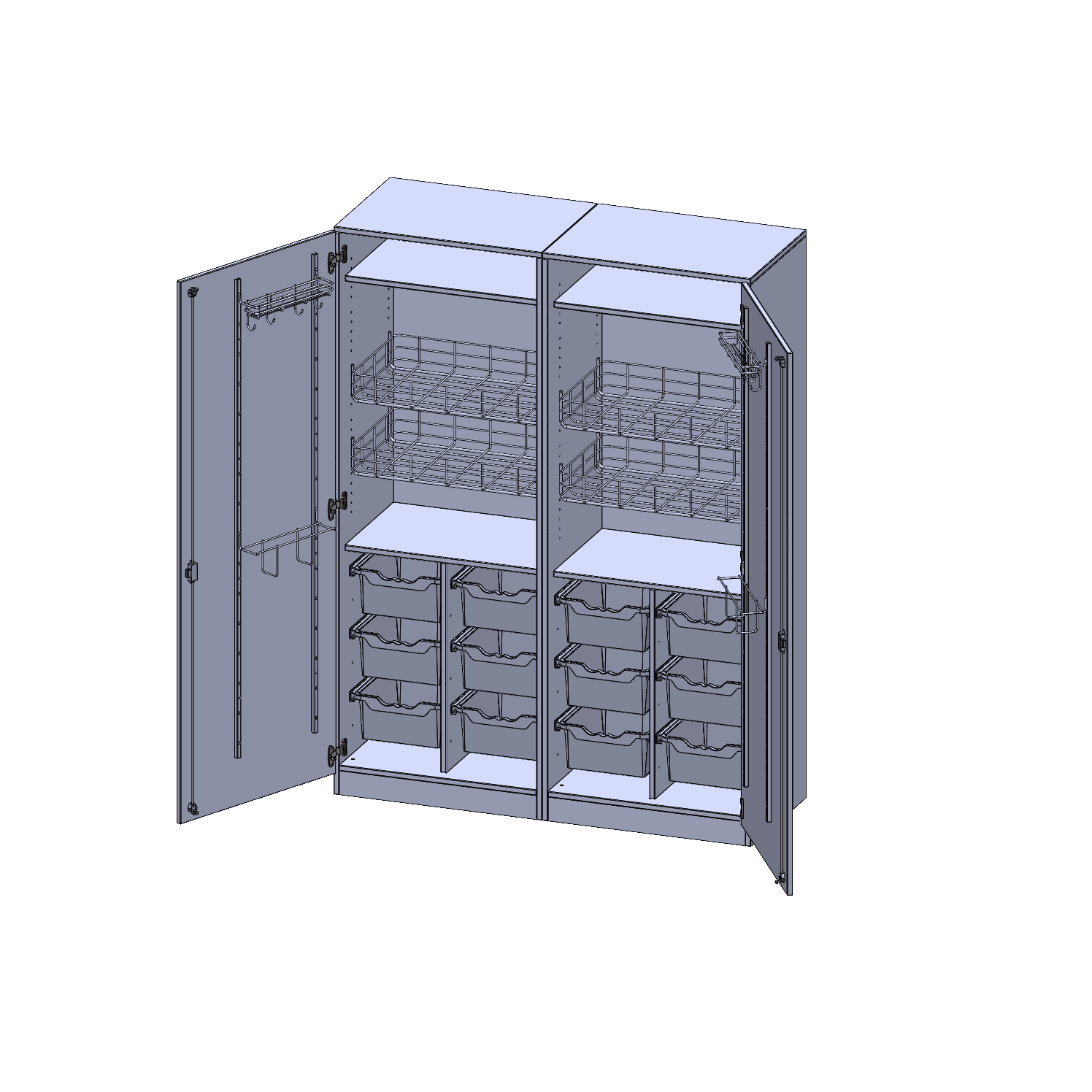 De evo180 kasten en planken in verschillende hoogtes en breedtes vormen een kernonderdeel van ons evo180 wandkastenprogramma. De achterwand is ontworpen als zichtbare achterwand, dus alle evo180 losse kasten of bovenkasten zijn ook geschikt als room dividers. Alle kasten zijn gemaakt van gemelamineerde E1-fijnspaanplaat, die FSC-gecertificeerd en formaldehydevrij is. We gebruiken bijzonder robuuste 2 mm dikke ABS-randen, die bij hoge temperaturen stevig worden verlijmd. Selecteer het gewenste decor uit ons decorpalet. De legborden zijn verstelbaar in stappen van 32 mm. Onze hoogwaardige plankdragers hebben een "uittrekstop" die voorkomt dat planken met inhoud uit de plank of kast glijden. Dankzij de 270° openende scharnieren kunnen de deuren tegen de opbouw geplaatst worden. Ze kunnen worden afgesloten met een slot. Op de deuren zit een stoflip. De sportkasten van de serie evo180 bieden voldoende ruimte voor ballen, speelgoed en andere gebruiksvoorwerpen voor lichamelijke opvoeding.De deuren zijn voorzien van of zonder houders voor kleine onderdelen en springtouwen. Stel je gewenste kledingkast samen door je keuze te maken uit de aangeboden varianten.