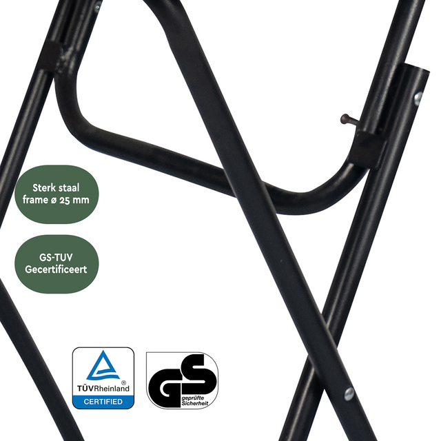 * Op zoek naar een snelle en gemakkelijke oplossing om je gasten te ontvangen? Dan is de BRASQ Statafel precies wat je nodig hebt. Of het nu gaat om een bedrijfsevenement, receptie, demonstratie, catering of een verjaardagsfeestje waar je extra ruimte nodig hebt, deze tafel creëert een perfecte plek voor je gasten. * Met een tafelblad met een doorsnede van 80 cm creëer je direct extra ruimte voor je gasten. Na het openklappen kun je de tafel met een veiligheidspin vastzetten zodat de tafel gezekerd is en niet per ongeluk kan inklappen. * De tafel is makkelijk inklapbaar is tot een compact formaat en met zijn lichtgewicht berg je hem makkelijk op én is de tafel makkelijk te vervoeren. Deze praktische en gebruiksvriendelijke klaptafel kan zowel binnen als buiten gebruikt worden gebruikt. De poten zijn voorzien van rubberen beschermdoppen, waardoor de kans op krassen wordt verminderd. * Het tafelblad is gemaakt van hoogwaardig kunststof met een mooie ronde vorm, waar tot 8 personen comfortabel aan kunnen plaatsnemen. Het frame is gemaakt van poedercoated metaal en kan eenvoudig worden opgevouwen. Het feest kan direct beginnen want de tafel wordt volledig gemonteerd geleverd. * Het schoonmaken van de BRASQ Statafel is een fluitje van een cent, het oppervlak kan met een natte schoonmaakdoek en wat schoonmaakmiddel gemakkelijke afgenomen worden. Met de optionele bijpassende hoes voeg je zowel stijl als bescherming toe aan je tafel. Deze statafel is een veelzijdige en handige optie voor elk evenement of gelegenheid. * Afmeting product ⌀80x110cm * Draagkracht/belastbaarheid 50 kg * Metalen frame * Dikte tafelblad 4,5cm * Geschikt voor binnen- als en buitengebruik * GS-TUV certificering * 1 jaar garantie