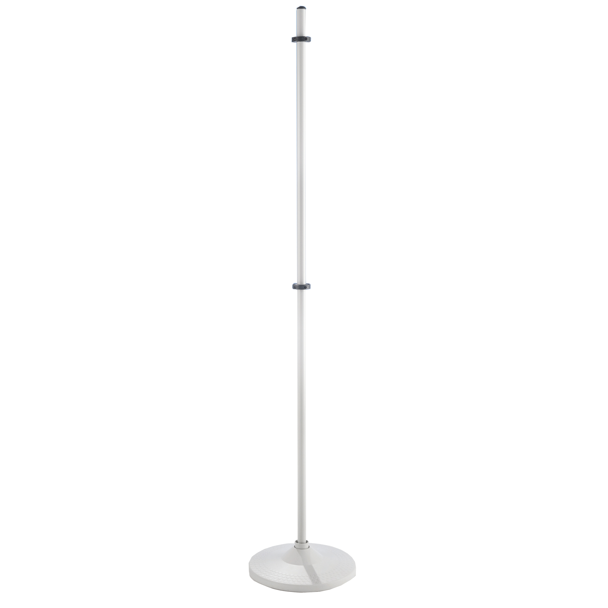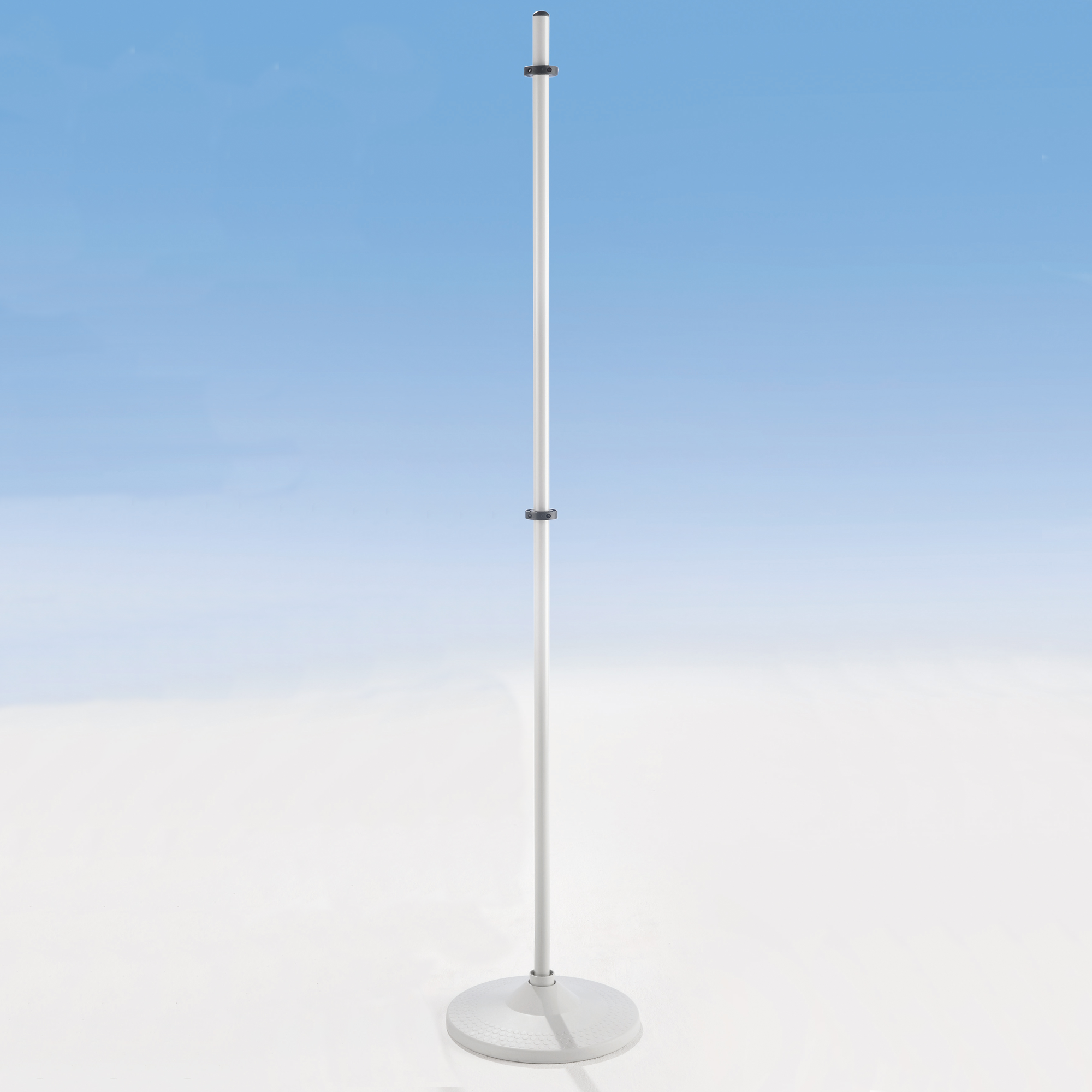 Ons statief met een plaatvoet voor een veilige stand en 2 traploos verstelbare adapters, elk bestaande uit 2 halve schalen, voor het ophangen van presentatiewanden. Je hoeft dus niets te monteren en kunt de wanden direct opzetten. Standpijp van gepoedercoate ronde buis Ø=32 mm, in lichtgrijs. Geschikt voor alle moderatiewanden van de NSTT-serie.