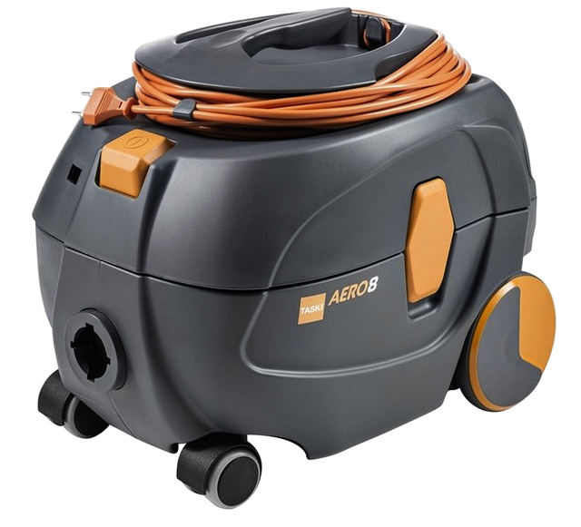 * Deze zeer efficiënte TaskiAERO8 stofzuiger maakt gebruik van de nieuwste technologie en heeft een super krachtige motor. * Met de gepatenteerde fluister technologie werkt de stofzuiger extreem geluidloos. * Vanwege het intelligente ontwerp is het vervangen van onderdelen, zoals kabels en filters, zeer eenvoudig en kan binnen enkele seconden door de gebruiker worden uitgevoerd, zonder daarbij gebruik te hoeven maken van gereedschap. * Trommelcapaciteit 13ltr. * Nominaal gebruik 585W. * Voltage 220/240V. * Gewicht met kabel 6.4 kg. * Geluidsniveau hoorbaar 53dB(A). * Zuigkracht 17.41 kPa. * Kabellengte 12,5m. * Slanglengte 2,2m. * Zuigbuizen Metaal telescoop. * Breedte zuigmond 280mm. * Afmetingen 424x313x353mm. * Beveiligingsklasse Klasse II. * Hepa optie Ja. * Goedkeuringen Tüv/SEV/CE.