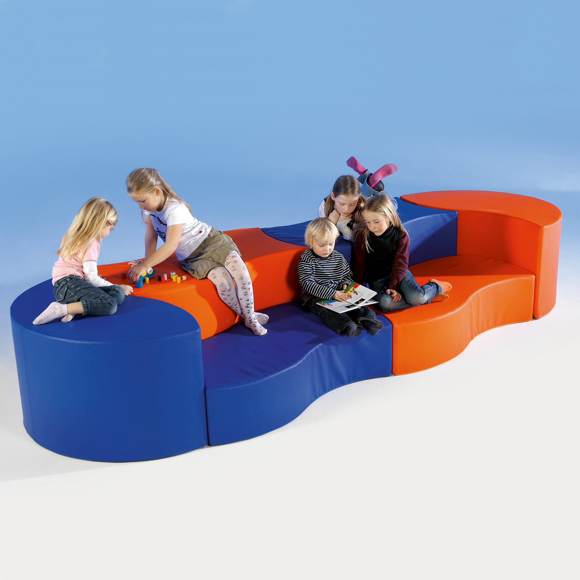 Een enorme bank met ruimte voor veel kinderen op beide niveaus. De onderkant van de Swing-it Sit zitgroep is gemaakt van antislip stof en zorgt voor de nodige stabiliteit. De hoes van imitatieleer is gemakkelijk schoon te maken en zeer duurzaam.
