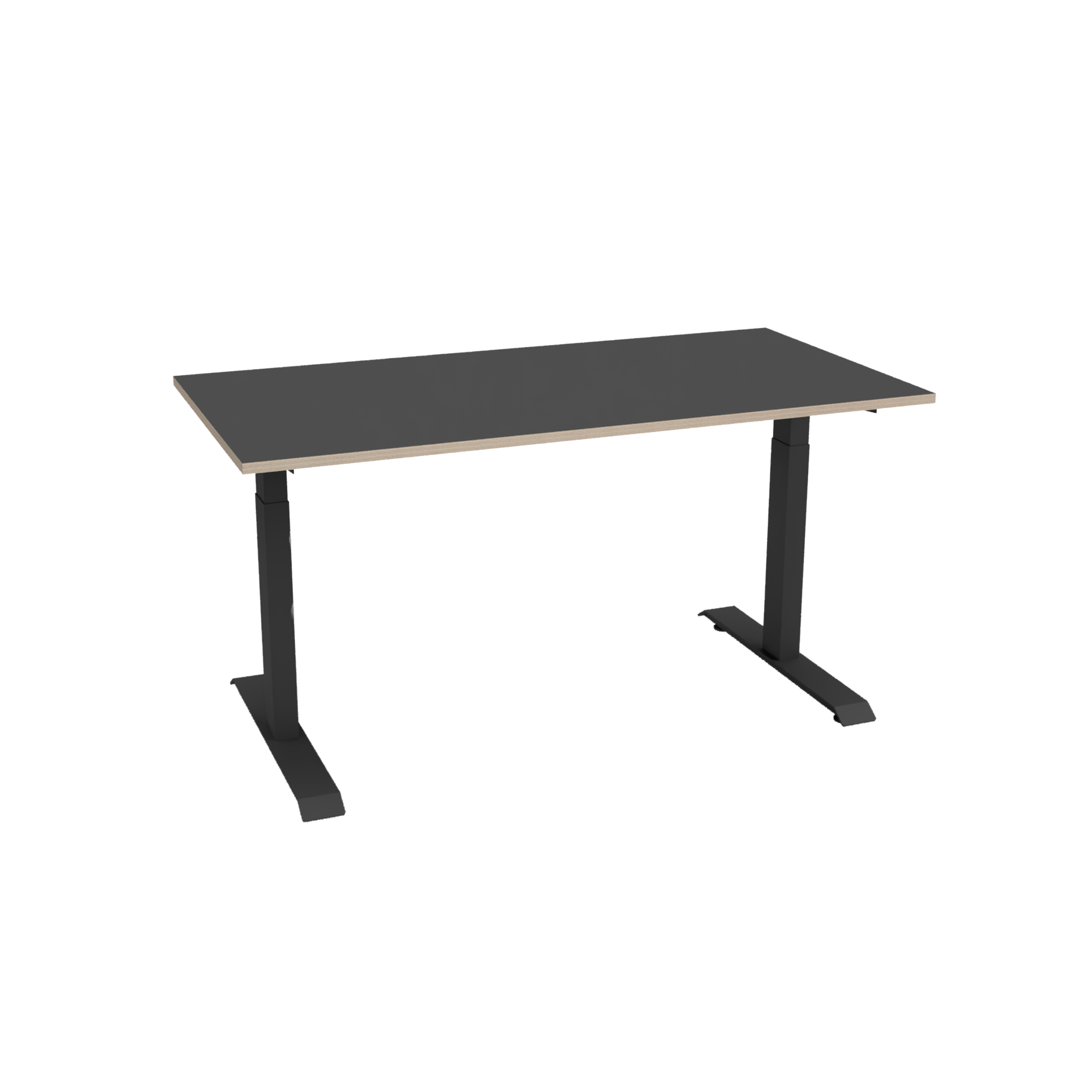 De vaste rechthoekige tafel combineert functionaliteit met een elegant design. Het tafelblad van 19 mm melamine in antraciet en de slagvaste ABS-rand in multiplex-look zijn in harmonie met het zwarte stalen frame RAL 9005. Bijzonder is de tafelloper met geïntegreerde stalen rol, waardoor deze gemakkelijk kan worden verplaatst. . Deze tafel is ideaal voor vaste werkplekken die ook flexibiliteit vereisen.