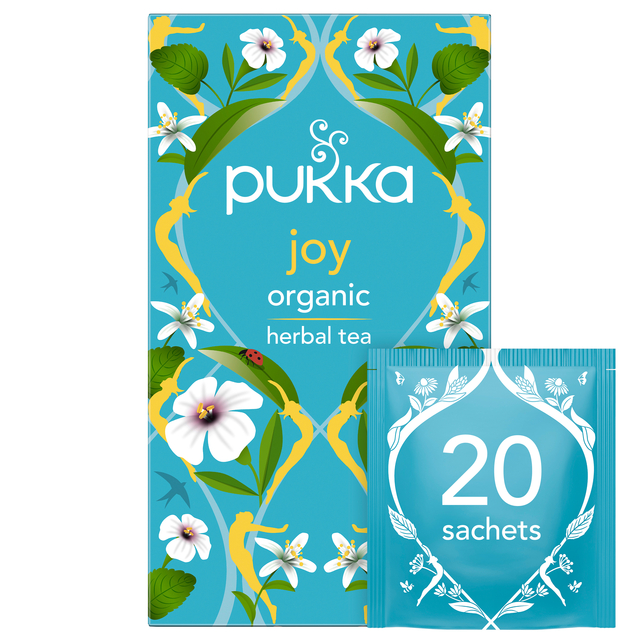 * Pukka Joy is een blend met citroenmelisseblad, lavendelbloem en een aroma van etherische sinaasappelolie. Gemaakt van 100% biologische ingrediënten die duurzaam verbouwd zijn. * Breng deze heerlijke kruiden tot leven door ze tot 15 minuten in vers gekookt water te laten trekken. * Een doosje bevat 20 individueel verpakte theezakjes die volledig biologisch afbreekbaar zijn.