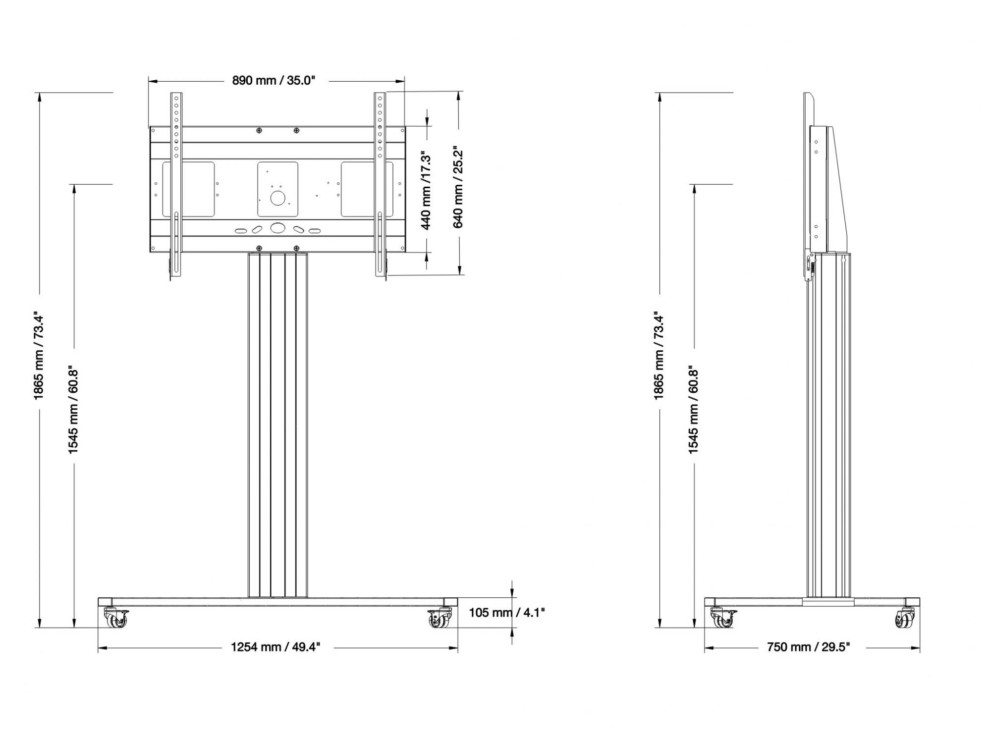 Tv-trolley, verrijdbaar statief met monitorbeugel, middendisplay 154,5 cm