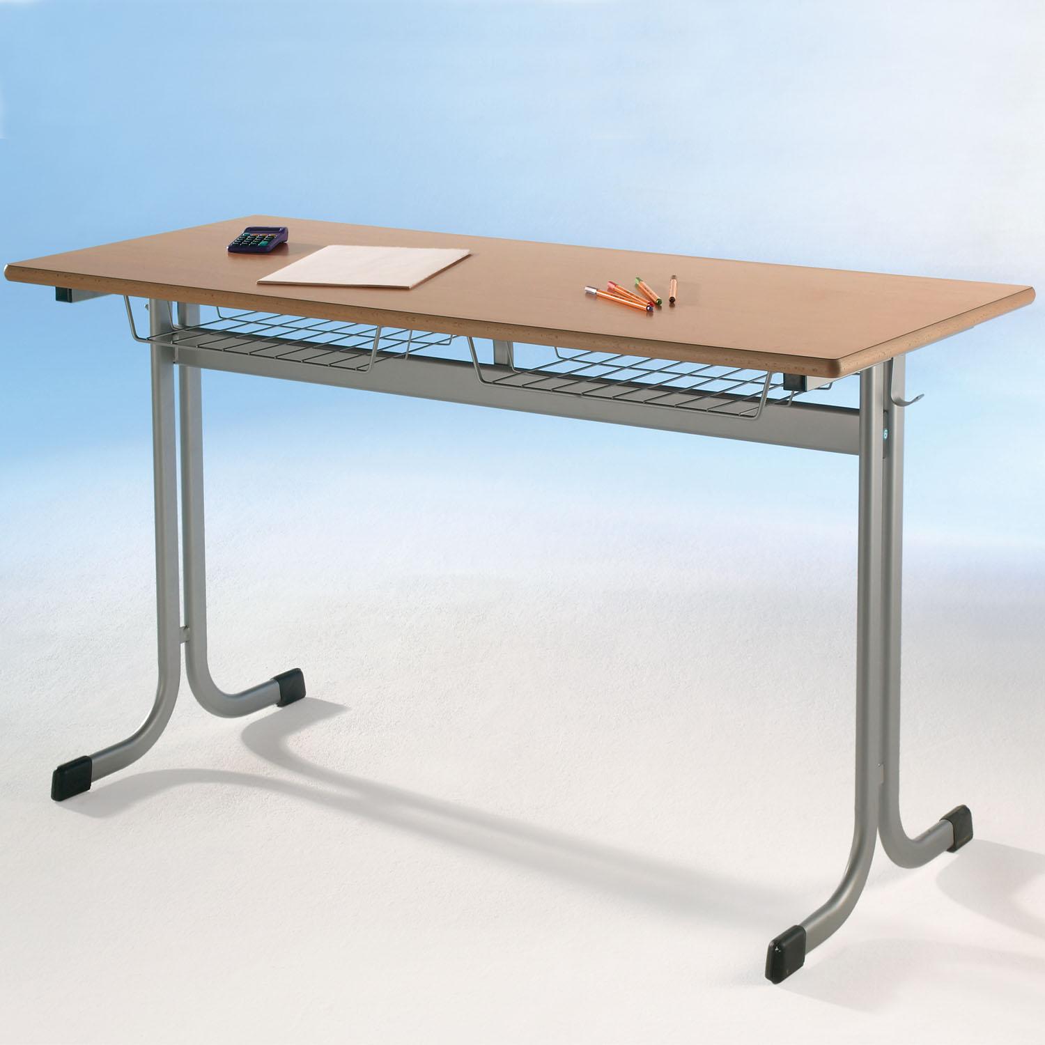 De MT50E-V tweepersoons studententafel met massief kernblad biedt de hoogste kwaliteit en duurzaamheid. De beschikbare decors en RAL-kleuren laten veel designwensen onvervuld. De beschikbare RAL-kleuren laten veel designwensen onvervuld. Aan een zijde van het tafelframe is een maphaak met afgeronde hoeken gelast. De buisuiteinden zijn gesloten en voorzien van afgeronde, recyclebare ABS-kunststof doppen. Optioneel zijn ook viltglijders voor harde vloeren verkrijgbaar (FG-ST).