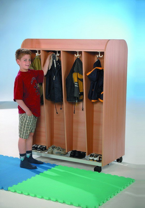Het element is dubbelzijdig te gebruiken, heeft een draadrooster voor schoenen op de bodem, 8 vakken (2 x 4 stuks) en voorzien van een drievoudige kledinghaak in ieder vak.Door 2 wielen met rem staat de kast altijd vast in iedere situatie.Specificaties:Hoogte: 120 cmBreedte: 162 cmDiepte: 64 cmVakbreedte: 27,5 cmVakdiepte: 31 cmDubbelzijdig te gebruikenDraadrooster voor schoenen op de bodemOpslagruimte boven de kledinghaken4 wielen (2 Stuks met rem)