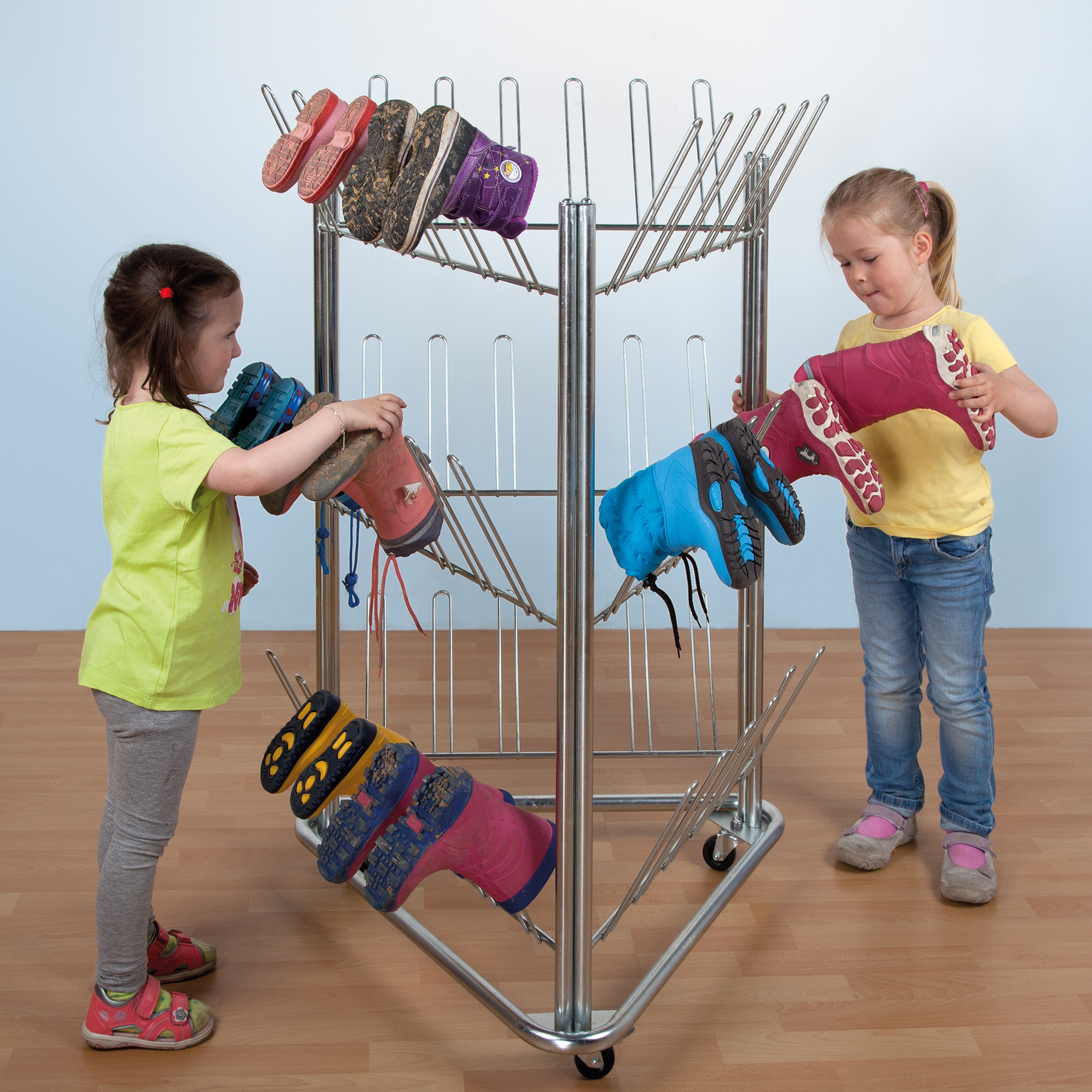 Het element is dubbelzijdig te gebruiken, heeft een draadrooster voor schoenen op de bodem, 8 vakken (2 x 4 stuks) en voorzien van een drievoudige kledinghaak in ieder vak.Door 2 wielen met rem staat de kast altijd vast in iedere situatie.Specificaties:Hoogte: 120 cmBreedte: 162 cmDiepte: 64 cmVakbreedte: 27,5 cmVakdiepte: 31 cmDubbelzijdig te gebruikenDraadrooster voor schoenen op de bodemOpslagruimte boven de kledinghaken4 wielen (2 Stuks met rem)