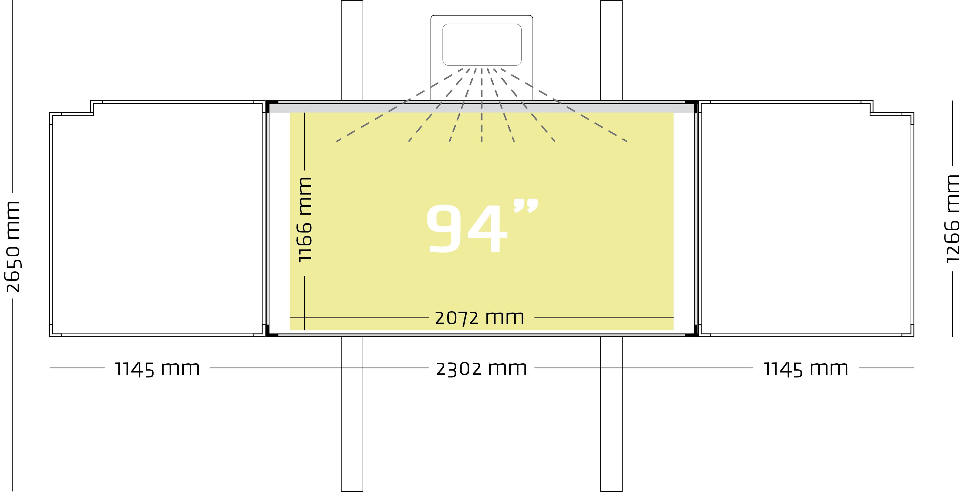 Vijfvlaks projectiebord (16:9) ExtraFlat op kolommen, Low Gloss, finger touch - 126x231 cm, 94"