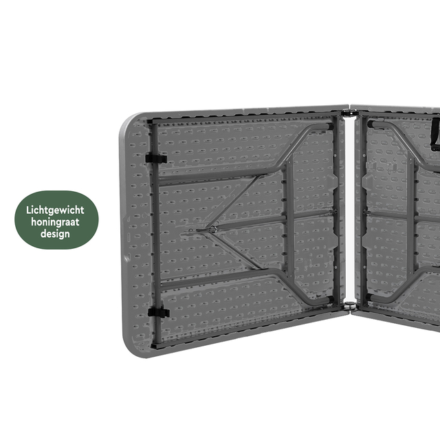 * Of je nu een professioneel evenement organiseert, een (verjaardags-) feestje thuis viert of gewoon wat extra ruimte nodig hebt, onze vouwtafels zijn de ideale metgezel. Met een perfecte balans tussen duurzaamheid, functionaliteit en stijl, bieden onze vouwtafels de ultieme flexibiliteit voor al je festiviteiten. Veelzijdig gebruik: Gebruik hem op de camping, tijdens je BBQ tuinfeest of binnen als extra thuiswerkplek. Je schuift met 6 tot 8 personen comfortabel aan. Ook binnen de Horeca wordt er goed gebruik gemaakt van deze handige bijzettafel. * Onze vouwtafels zijn ontworpen met jouw gemak in gedachten. Ze kunnen eenvoudig worden opgevouwen en opgeborgen, waardoor ze weinig ruimte innemen wanneer ze niet in gebruik zijn. In opgevouwen staat is hij praktisch en compact om te verplaatsen en met zijn handige handvat pak je hem eenvoudig om mee te nemen. * Betrouwbaar, compact en lichtgewicht: De vouwtafel heeft een afmeting van 180x70x74 (lxbxh) en heeft 2 instelbare hoogtes, zo stel je hem eenvoudig in op 54 en 74 cm hoogte. Perfect voor zowel kleine appartementen als grotere evenementenruimtes. Hij heeft een sterk stalen frame met buizen met een doorsnede van 25mm. Door het lichtgewicht honingraat design weegt de vouwtafel slechts 8,5 kg. Deze inklapbare tafel is gemaakt uit robuuste materialen wat zorgt voor een kwalitatief product, en is daarom zowel binnen als buiten te gebruiken. Dit komt de maximale draaglast ten goede (max 100 kg). * Makkelijk in gebruik: De tafel wordt gebruiksklaar geleverd. Door de pootjes uit te klappen, en de vergrendeling op hun plek te schuiven, heb je binnen een paar seconde extra (zit)ruimte gecreëerd. Door de anti slip doppen onder aan de pootjes staat de tafel stabiel en beschermt hij