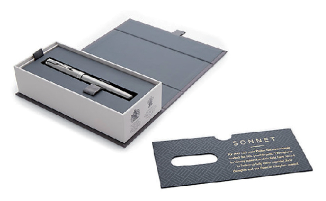 * Sonnet - een symbool van Parker voor elegantie. * Sonnet is het symbool van Parker voor elegantie. * Met een scalea aan uitvoeringen, elk bijzonder detail is vakkundig uitgevoerd om tot een verfijnde schrijfervaring te komen. * Steel CT, edelstaal met een geborsteld metalen effect. * De vulpen is gecomplementeerd met palladium afwerkingen en een edelstalen penpunt. * Inclusief vulling zwart. * Verpakt in een hoogwaardige Parker geschenkverpakking.