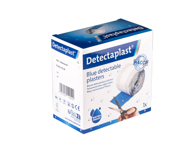 * HACCP pleisters zijn verplicht op alle plaatsen waar met voedselmiddelen wordt gewerkt zoals in voedingsbedrijven, horeca, grootkeukens, bakkers, beenhouwers, broodjeszaken etc. * Door zijn blauwe kleur valt de detecteerbare pleister op waardoor er minder kans is dat ze in de voedselketen terechtkomen. * Daarenboven is er een aluminium strip onder het wondpad waardoor de pleister in de voedingsindustrie gedetecteerd wordt door metaaldetectoren. * Deze pleisters zijn gemaakt uit waterdicht en vuilafstotend PE (poly-ethylen) materiaal. * Ze hebben een bijzonder goede kleefkracht waardoor ze zelfs in ruwe omstandigheden goed blijven zitten. * De hypo-allergene lijm zorg ervoor dat de kans op allergiën minimaal is.