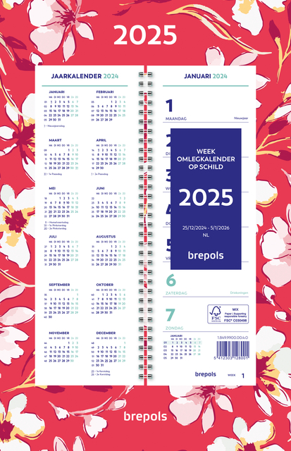 * Brepols Wand-week kalender 2025 - weekoverzicht 19 x 31 cm - Fantasy Assortiment