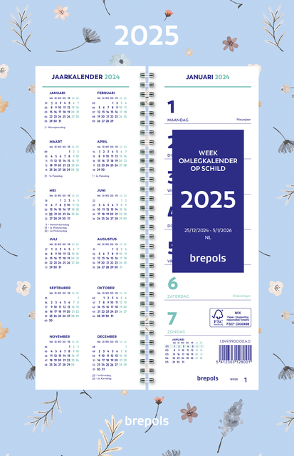 Brepols Week omlegkalender 2025 - 2 weken overzicht 20 x 31 cm - Fantasy Assortiment. Handig 2 weken overzicht op schild. De week omlegkalender heeft een indeling van 1 week per pagina. Hierdoor zie je in één oogopslag de afspraken en taken voor 2 weken. Deze handige kalender zonder uurindeling laat je toe om vrij je planning per dag te bepalen. Zaterdag en zondag hebben evenveel schrijfruimte als de andere dagen. Voor zowel zakelijk gebruik als privédoeleinden. * Kenmerken: 12 maanden van januari tem december - 1 week per pagina - doordachte en functionele lay-out, voor een overzichtelijke planning - 1-talig NL - met weeknummering - 58 pagina’s - inclusief feestdagen - wit FSC agendapapier, vlot beschrijfbaar - 20 x 31 cm - met wire-O metalen spiraalbinding - assortiment van 5 leuke fantasie tekeningen. Deze worden in willekeur uitgeleverd.