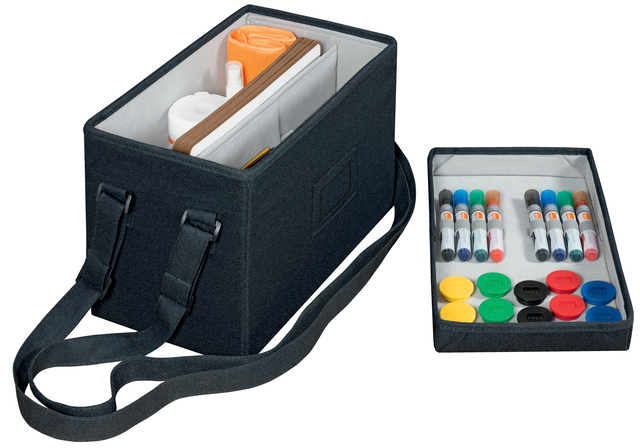 Breng jouw ideeën overal tot leven met de Nobo draagbare whiteboard accessoirekit – dé toolkit voor flexibele samenwerking. Of je nu onderweg bent of een spontane brainstorm organiseert, deze stijlvolle, lichtgewicht tas heeft alles wat je nodig hebt. De magnetische deksel houdt je magneten netjes op hun plek, terwijl de elastische lussen zorgen voor directe toegang tot je whiteboard markers. Dankzij het slimme, overzichtelijke ontwerp heb je al je whiteboard benodigdheden altijd bij de hand. Perfect voor mobiel gebruik, creatieve vergaderingen of workshops op locatie.