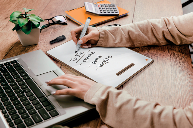 * Het heldere acryl notitiebord ligt vlak om gemakkelijk te kunnen beschrijven en is ideaal als draagbaar whiteboard door de geïntegreerde handgreep.
