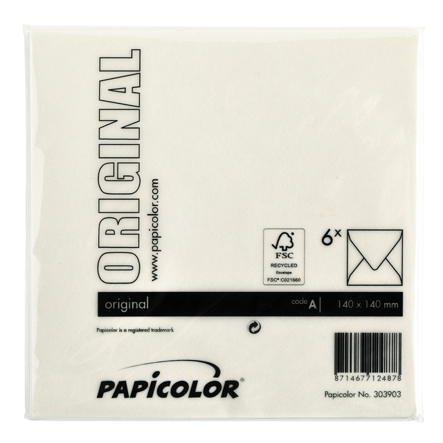 Eigenschappen "Envelop Papicolor 140x140mm anjerwit pak à 6 stuks"