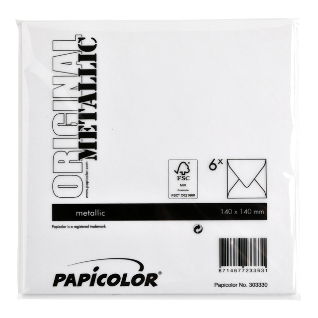 Eigenschappen "Envelop Papicolor 140x140mm metallic parelwit pak à 6 stuks"