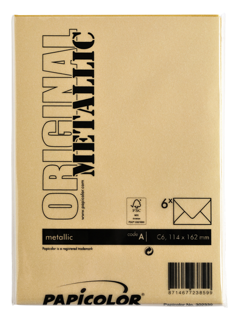 Eigenschappen "Envelop Papicolor C6 114x162mm metallic goud pak à 6 stuks"