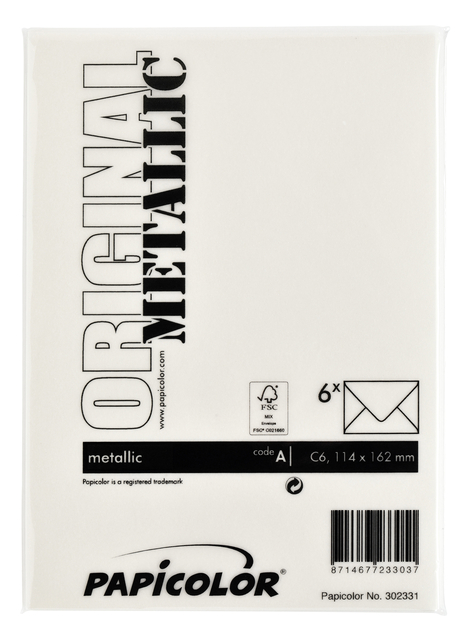 Eigenschappen "Envelop Papicolor C6 114x162mm metallic ivoor pak à 6 stuks"