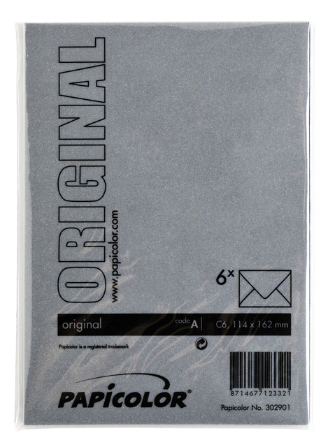 Eigenschappen "Envelop Papicolor C6 114x162mm ravenzwart pak à 6 stuks"
