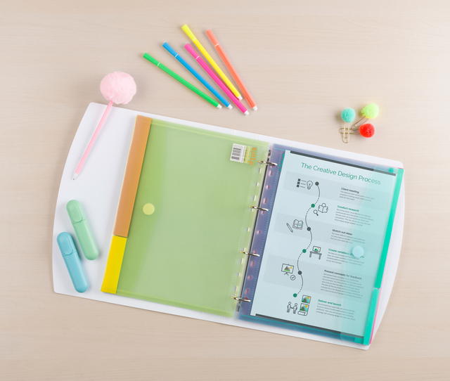 Laat je veroveren door de mooie kleuren en materialen van onze geperforeerde enveloppen. Archiveer, bescherm en toon je documenten op een vrolijke, kleurrijke manier.