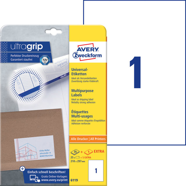 Eigenschappen "Etiket Avery Zweckform 6119 210x297mm A4 wit 25stuks"