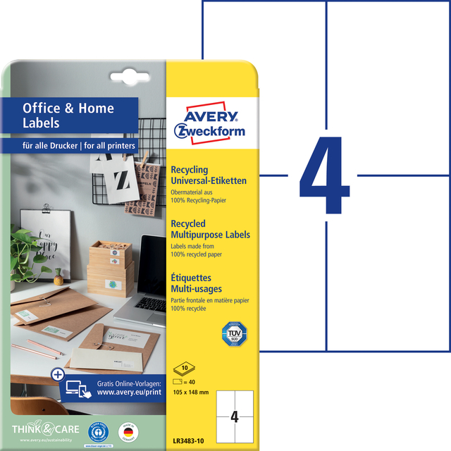 Etiket Avery Zweckform LR3483-10 105x148mm recycled wit 40stuks