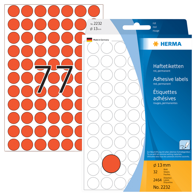 Eigenschappen "Etiket HERMA 2232 rond 13mm rood 2464stuks"