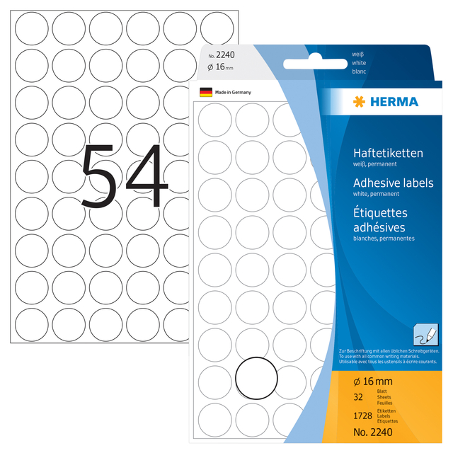 Herma is een toonaangevende fabrikant van zelfklevende etiketten en etiketteersystemen. Het bedrijf is opgericht in 1906 in het Duitse Stuttgart en heeft zich sindsdien ontwikkeld tot een wereldwijde speler op het gebied van labeloplossingen. Het merk staat bekend om zijn hoogwaardige producten en innovatieve oplossingen voor een breed scala aan toepassingen.