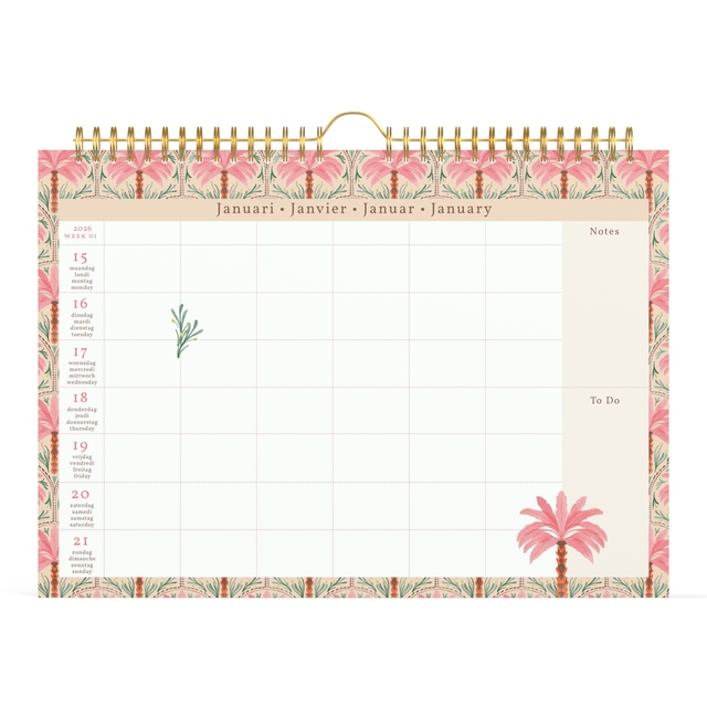 Familiekalender 2026 Lannoo 310x220 Exotic palms 7dagen/1pagina roze