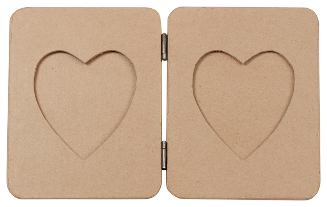 Dubbele fotokader in boekvorm met hart uitsnijding. Dit fotokader kan je naar eigen wens versieren met Décopatch-papier, acrylverf, glitter, stickers en/of behouden in zijn natuurlijke kraftlook. De mogelijkheden zijn eindeloos! Decopatch techniek: Scheur of knip een paar stukjes Décopatch papier van ongeveer 2x2 cm - Breng lijm aan op het object. Leg een stukje papier op het gelijmde oppervlak en doe er een tweede laag lijm overheen. Overlap de stukjes papier om het oppervlak volledig te bedekken, en meng daarbij kleuren en motieven. Dit fotokader heeft een afmeting van 14x1,5x18 cm.