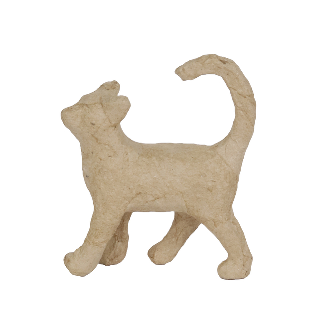 Decopatch Papier Mache figuren om met Decopatch papier (bedrukt rijstpapier) te beplakken, te beschilderen met acrylverf of bijvoorbeeld te mozaieken. De mogelijkheden zijn eindeloos! Decopatch techniek: Scheur of knip een paar stukjes Décopatch papier van ongeveer 2x2 cm - Breng lijm aan op het object. Leg een stukje papier op het gelijmde oppervlak en doe er een tweede laag lijm overheen. Overlap de stukjes papier om het oppervlak volledig te bedekken, en meng daarbij kleuren en motieven. Deze stappende kat heeft een afmeting van 11x3,5x12cm.