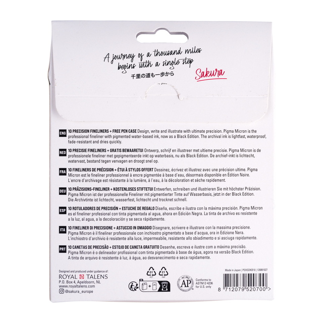 Eigenschappen "Fineliner Sakura Pigma Micron Black Edition set à 10 breedtes + gratis etui"