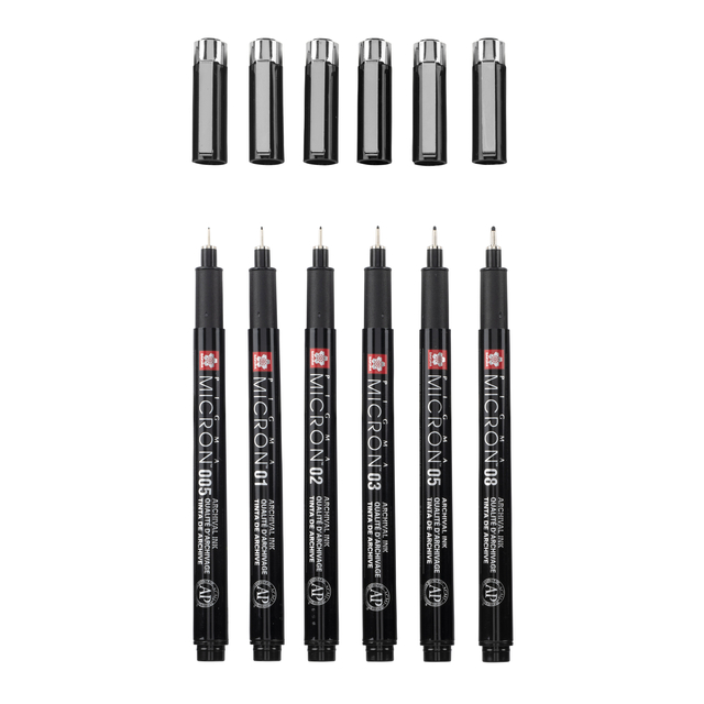 Eigenschappen "Fineliner Sakura Pigma Micron Black Edition set à 6 breedtes + gratis etui"